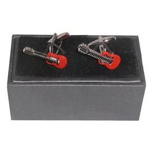 Red Guitars Band Rock Jazz silver-plated torpedo cufflinks in padded gift box