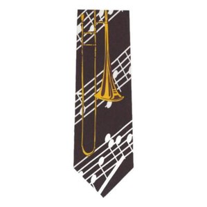 Gold Trombone Polyester Novelty Tie Student Teacher Musician Gift