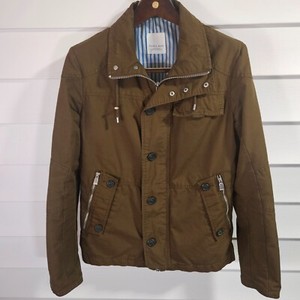 Zara Man Womens Size Large Brown Short Cotton Jacket Zippers Biker Pockets