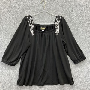 Bob Mackie Wearable Art Knit Peasant Tunic Shirt Women Plus 1X Black Embroidered