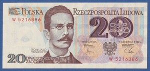 POLONIA / POLAND -- 20 ZLOTYCH ( 1.6.1982 ) -- UNC -- PREFIX W -- PICK 149a .