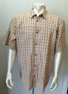 Cabela's Men's Beige Orange Plaid Short sleeve Button Up Cotton Blend Shirt XL