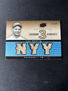 2008 Upper Deck Premier Lou Gehrig Legendary Triple Relic /50 Pinstripe Stitch