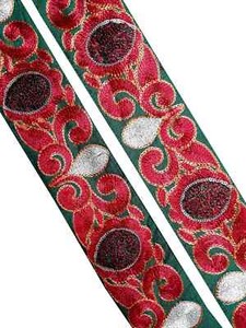 Indian Vintage Saree Trim | Pink and Green Floral Embroidery Border Ethnic Craft