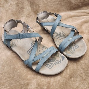 Merrell Sandspur Rose Blue Smoke Leather Sandal Strappy Outdoor Gorpcore Sz 9