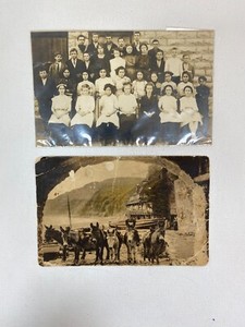 Set of 2: 1920s Vintage Postcards - Donkey Illustration & School Picture