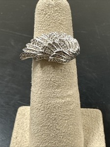 925 Sterling Silver & Diamond Angel Wing Cocktail Ring - size 5