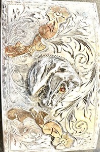 Plata De Jalisco VHLC Guad Mex Sterling Silver 925 Etched Horse Belt Buckle