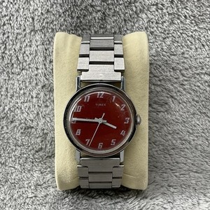 Vintage Timex Watch Mens Red Face Silver Tone Manual Wind Up READ
