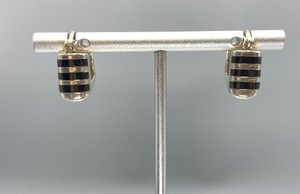 Sterling Silver, Inlaid Black Enamel Square Hoop Earrings