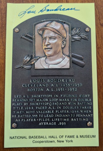 Lou Boudreau Autographed Hall of Fame Postcard - Yellow. Deceased 2001