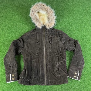 Magellan Women’s L Corduroy Sherpa Lined Hooded Winter Jacket Brown Fur Trim
