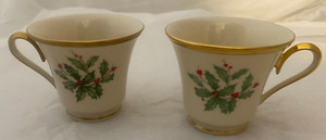Lenox ivory/gold Holiday Footed Tea Cups~teacups~Set of 2