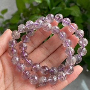 9mm 2PCS Natural Rare Purple Phantom Crystal Round Beads Bracelet