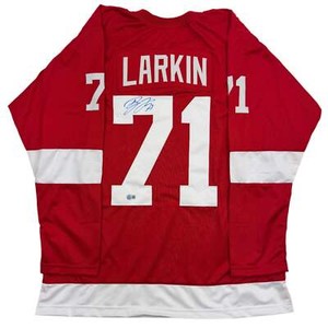 Autographed/Signed Dylan Larkin Detroit Red Hockey Jersey Beckett BAS COA