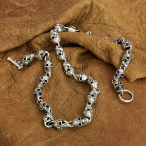 Huge 925 Sterling Silver Skull Necklace Biker Rock Punk Jewelry TA264NA BZ
