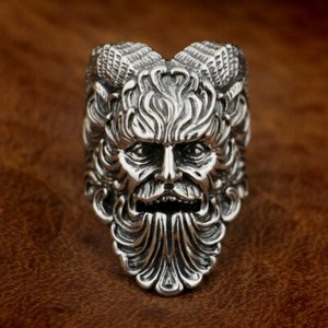 925 Sterling Silver Great God Pan Ring Goats Demon Ring Mens Biker Punk TA88A