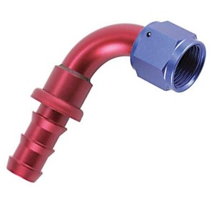AN12 90 Degree Push On Hose End Red & Blue