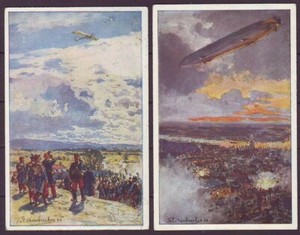 g1726/ Germany (2 stk) Hasserode Postcard 1915 # Zeppelin & Airplane