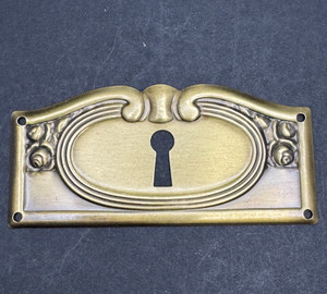 Vintage SINGLE MID WEIGHT Brass Skeleton Key Hole Door Drawer Plate Escutcheon