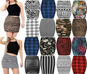 Womens Bodycon Printed Mini Skirt Ladies Elasticated Waist Tartan Print Skirt