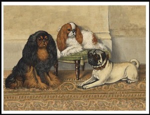 KING CHARLES TOY SPANIEL DOGS AND PUG VINTAGE STYLE DOG ART PRINT POSTER