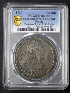 1727 XF DETAILS PETER II SILVER ROUBLE PCGS GENUINE MOSCOW TYPE LETTERED EDGE