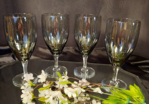 4 "Debutante Gray" Wine Glasses / Water Goblets by Fostoria
