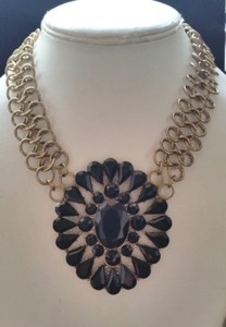 JENNIFER LOPEZ BLACK ROUND CRYSTAL GOLD TONE PENDANT NECKLACE