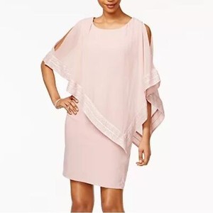 NWT SLNY Metallic Trim Capelet Sheath Short Dress Pink Cold Shoulder size 18