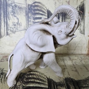 Lucky Elephant Statue 6'W×7' Tan Off/ White Polyresin Figurine Safari Collectibl