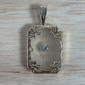 Camphor Glass Estate Pendant Gold Tone Unmarked Etched Vintage PENDANT ONLY
