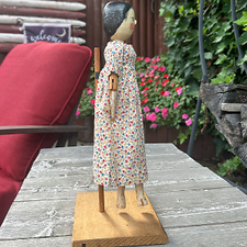 Vintage Pilgrim Woman Figurine Caroler Brown Felt Dress White Apron Bonnet