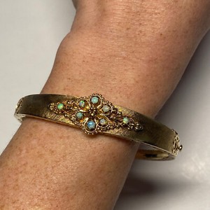 Hinged Opalight Bangle Bracelet 14k Yellow Gold With Brushed Finish