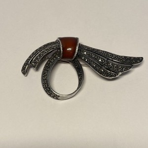 Vintage Sterling Silver Marcasite Pin With Butterscotch Amber Gemstone, 14 Gram