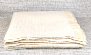 Vintage LL Bean Wool Blanket Whipstitch Edge Twin Cream 59" x 83"