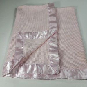 Starting Out Thermal Baby Blanket PINK Waffle Weave Satin Trim Security 48”x34”