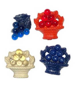 Set/4 VTG Lot 1940s BASKET OF GRAPES FRUIT Buttons Plastic 1" Figural Red Blue