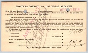 Butte, MT Christie / Leys Jewelry - Royal Arcanum Assessment May 1919 Postcard