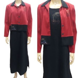 VTG Positive Attitude 2 Piece Dress & Jacket Printed Microfiber Suede Feel Set