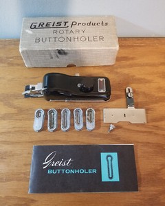 Vintage Greist Sewing Machine Rotary Buttonholer with Attachments & Doc W654321