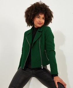 Joe Browns Women's Dogtooth Cropped Biker Jacket, Green, 8