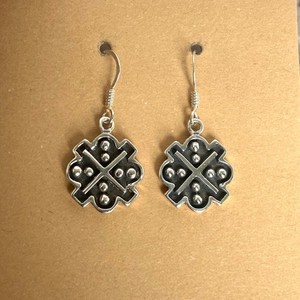 Oxidized Sterling Silver 925 Saltire Cross Style Dangle Drop Earrings