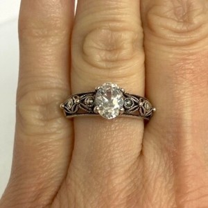 VTG Sterling Silver 925 Oval CZ Solitaire Milgrain Filigree Band Ring Size 5.75
