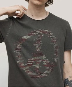 John Varvatos Mens Size 1 Small Raw Edge Shirt Tee Distorted Peace Logo