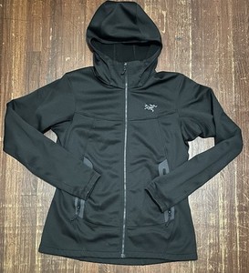 ARC'TERYX Women's Large Arenite Soft Shell Hoodie Jacket Black Hooded Pockets