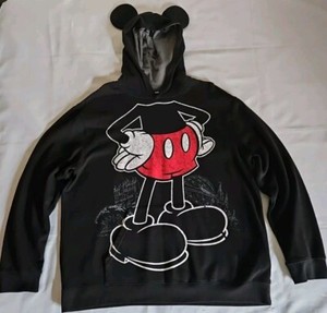 Mickey Mouse Hoodie With Ears Full Zip Disney Parks Black Pockets Adult Size XL