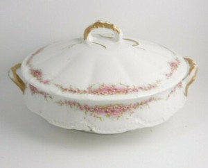 Theo Haviland Limoges Porcelain Lidded Vegetable Bowl 601 Pink Flowers