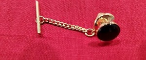 32Tb Tie Pin Gold with Black Faux Onyx Center