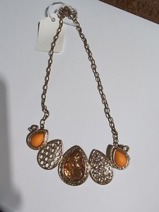 3 Nt Goldtone Faceted Peach And Gold Peach Tear Drop Choker Necklace